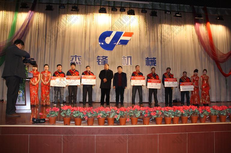 年度表彰大会共设立7个奖项,表彰12人、1个班组,公司董事长张杰、总经理张吉祥、副总经理张庆祥予以颁奖,颁奖结束后由先进工作者代表发言;