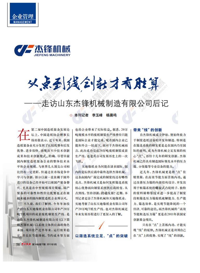 2014年1月11日,山东省科技厅组织相关专家对山东杰锋机械制造有限责任公司承担的科技部中小企业创新基金项目—“高效节能粗选压力筛”项目进行了验收评审。
