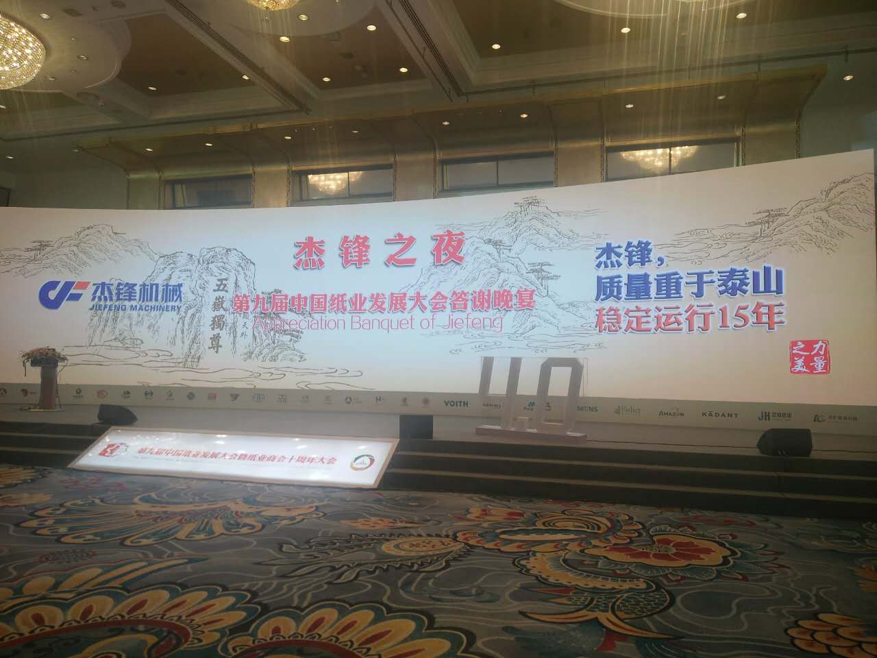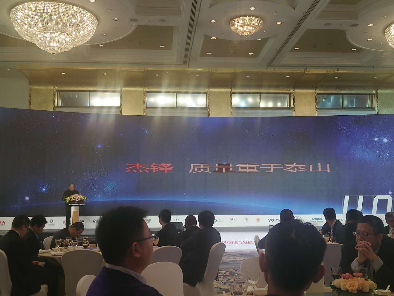 11月19-20日,第九届中国纸业发展大会暨纸业商会十周年大会在北京中国大饭店召开,来自国内外造纸行业的企业家、专家学者、行业组织领导、政府官员、媒体记者等300余人参会。山东杰锋机械制造有限公司再次承办“杰锋之夜”答谢晚宴,并荣获“中华蔡伦奖”之 自主力量奖。
